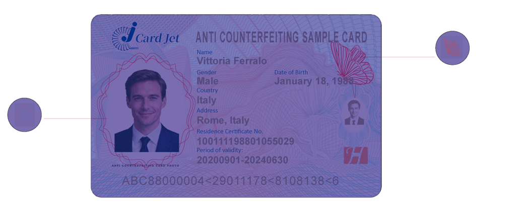 Add a semi transparent portrait replica to the card design to enhance the security of anti-counterfeiting recognition.